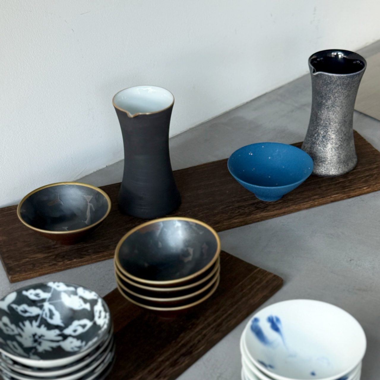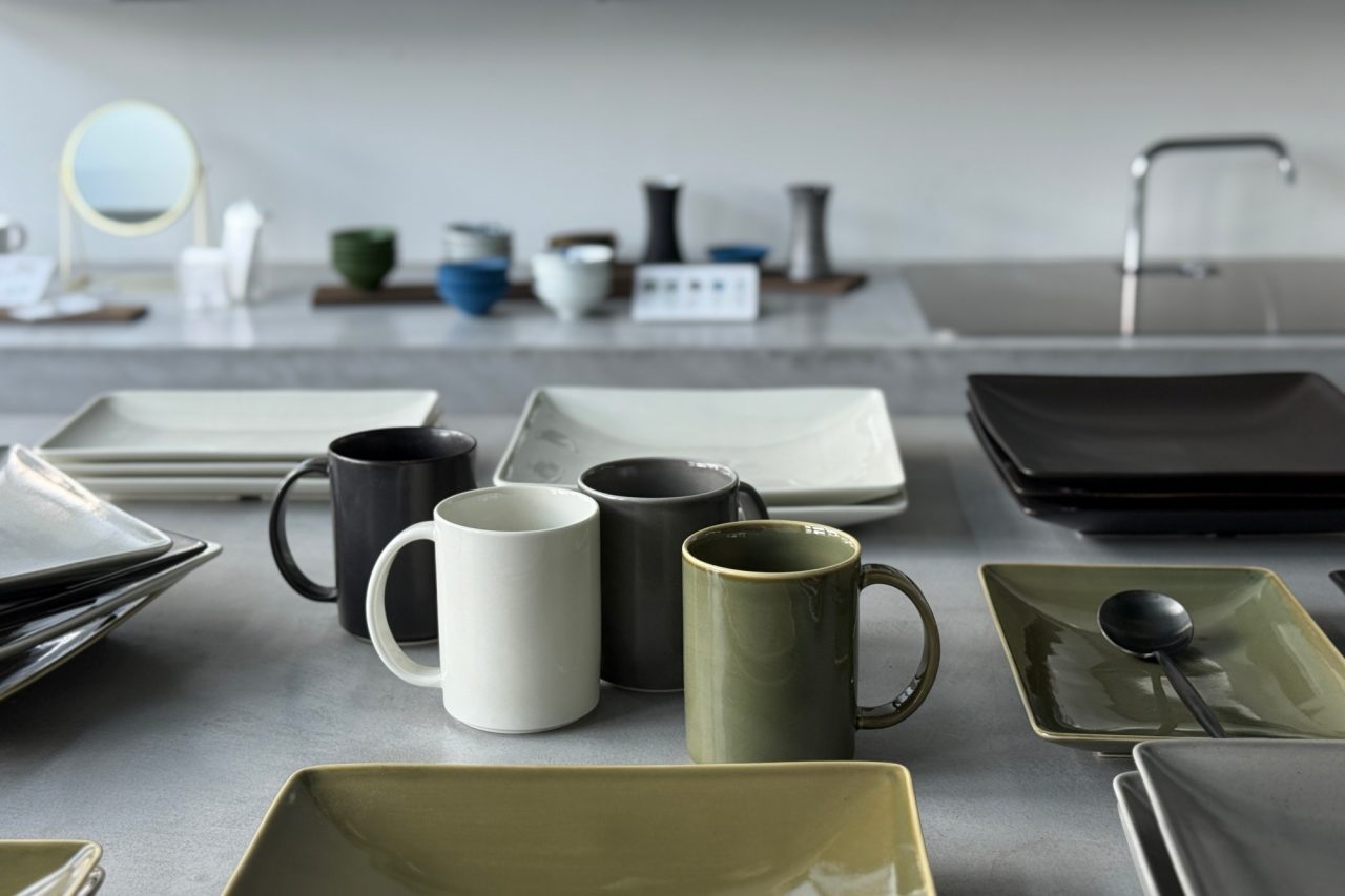 今回は、シックなアースカラーが印象的な「Arc」や、有田焼の技術がつまった表情豊かな「Keshiki(景色)」、やきものの素材から生まれたジュエリー「S to S」、個体差のある釉薬の流れが美しい「香酒盃 / 素磁釉流し」など、職人の手仕事による味わい深いアイテムが揃った、今の気分にぴったりな新作展示になっています。